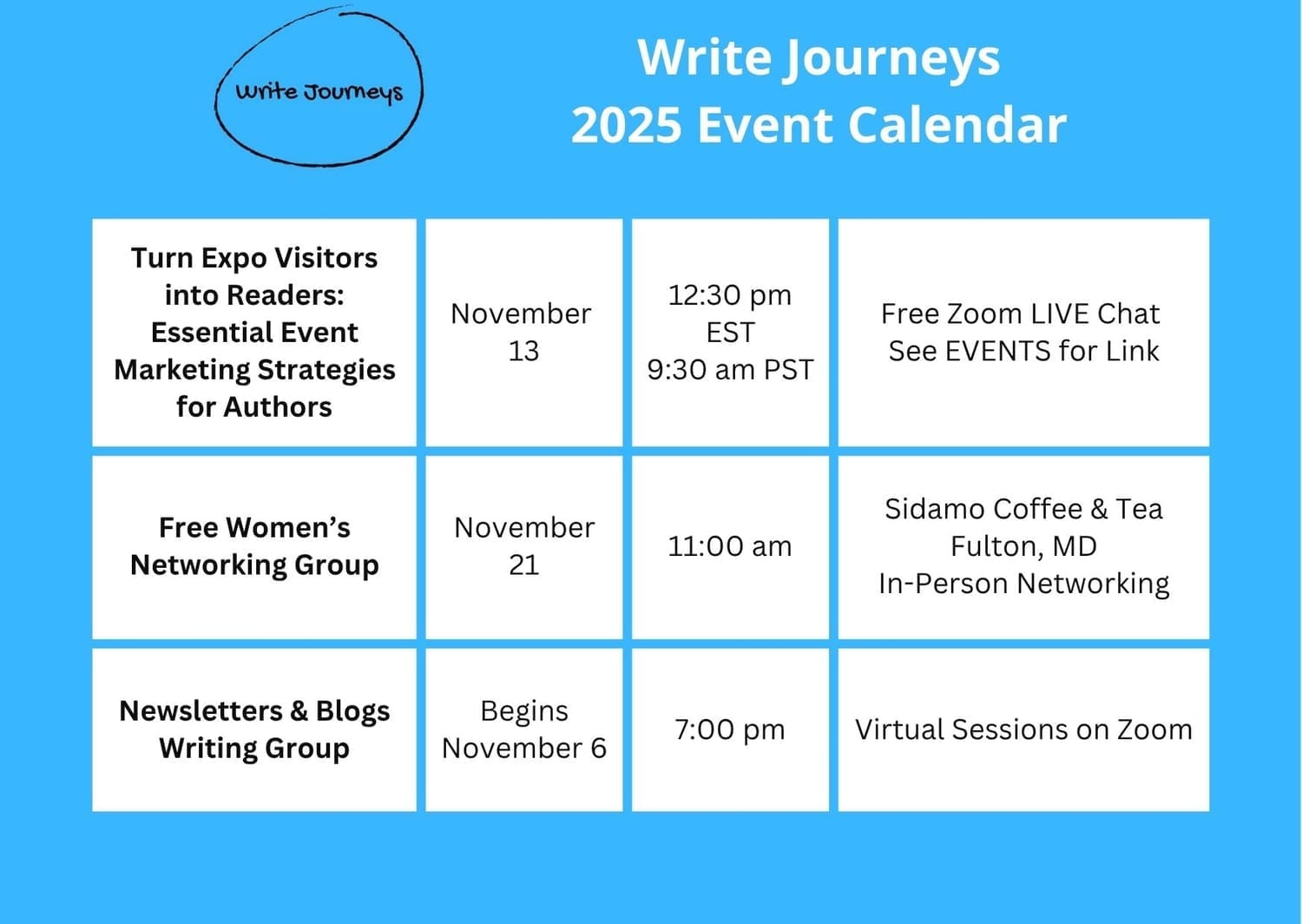 So, I invite you to join me once a week from November 6th through February to WRITE ALL OUR MONTHLY newsletters or blogs for 2026.